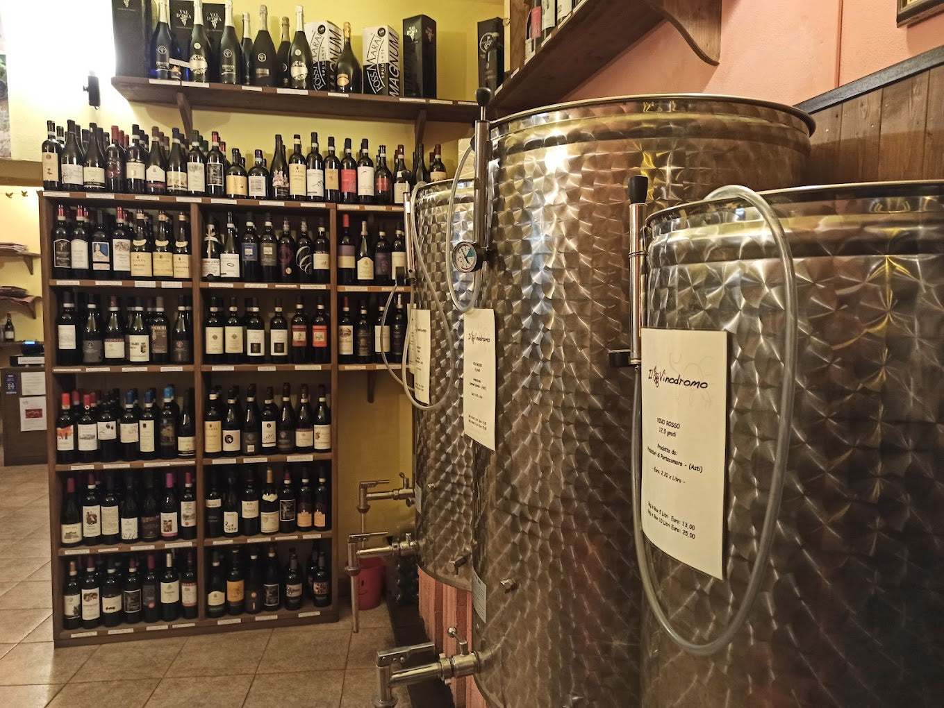 In un’epoca in cui il tempo è più che tiranno, avere ‘sotto casa’ un esercizio commerciale che rifornisce la tavola con prodotti pregiati e selezionati, è sicuramente un grande vantaggio. Le botti di acciaio inox troneggiano con vini rossi, bianchi e rosati con denominazioni sicure e controllate.